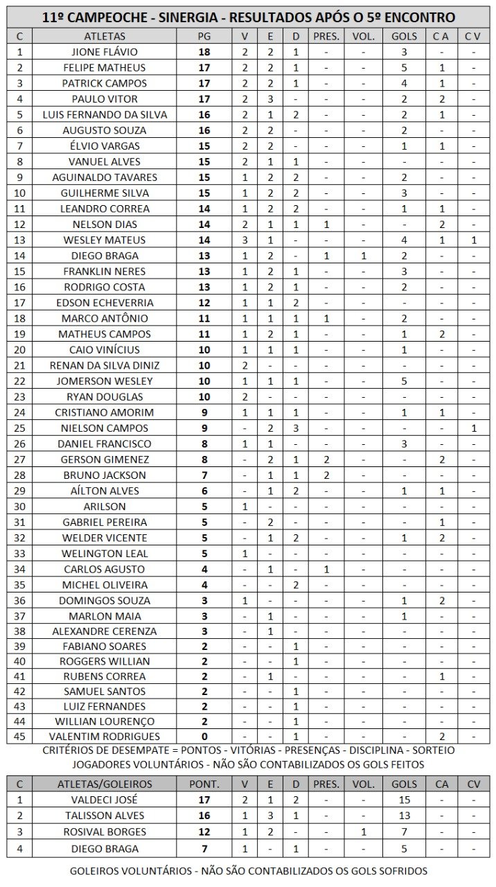 A quinta rodada do Campeoche aconteceu na tarde do último sábado (22/03), marcando a metade da fase classificatória. A competição segue acirrada, e as equipes começam a definir suas posições para a segunda metade do campeonato.