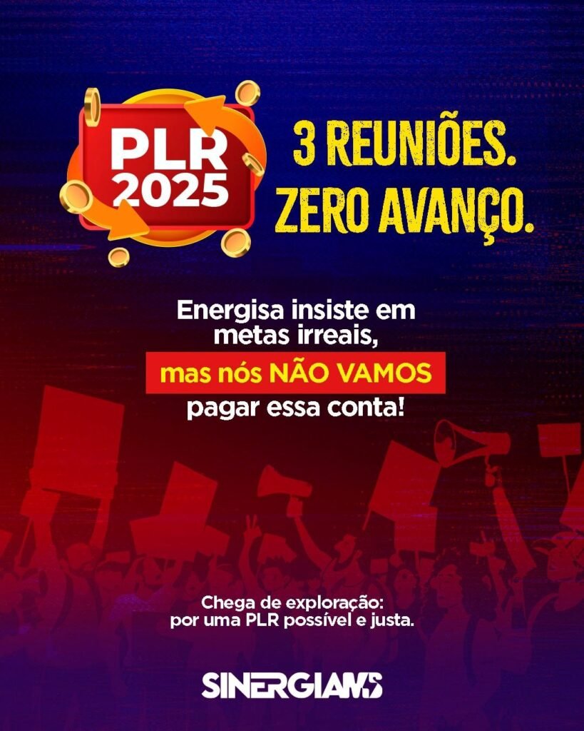 Terminada mais uma rodada de negociações sobre a PLR 2025. Foram três reuniões nesta semana, e todas com o mesmo desfecho: sem nenhum avanço. A Energisa continua irredutível, fazendo questão de manter metas e pesos completamente fora da realidade de quem coloca a energia de pé no Mato Grosso do Sul.